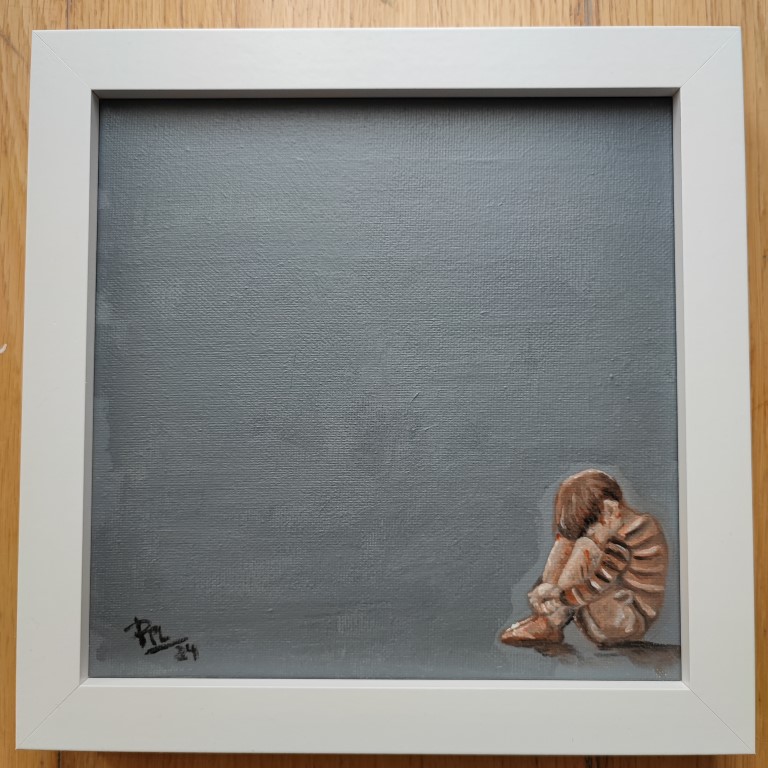 «Tristeza» – Óleo y acrílico sobre lienzo (10×10) (Exposición Fundación AYO 2024)
