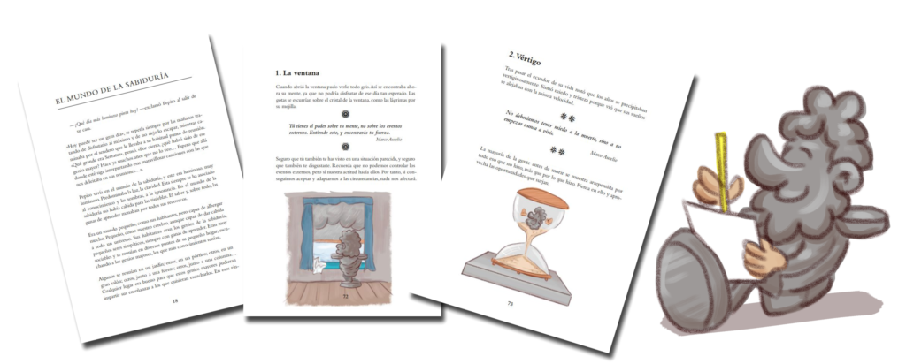 El libro está compuesto por el cuento de Pepito Estoico y más de cien microrrelatos para reflexionar, junto con más de cien ilustraciones a todo color.